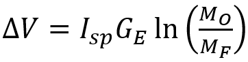 The Rocket Equation showing deltaV= ISP* G * ln(MO/.MF)